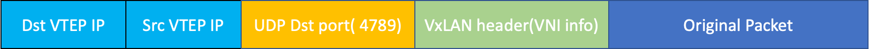 You must have already noticed the headers now in the previous Wireshark captures, here is a look of a vxlan encapsulated packet.